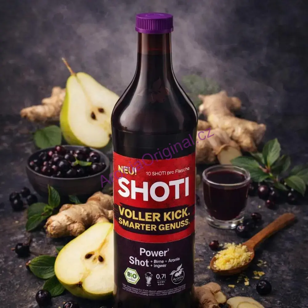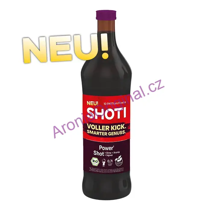 Úvod »PŘÍMO LISOVANÉ ŠŤÁVY*» SHOTI bio Power-Shot (hruška, arónie, zázvor), 100% přímo lisovaná šťáva, 0,7 litru